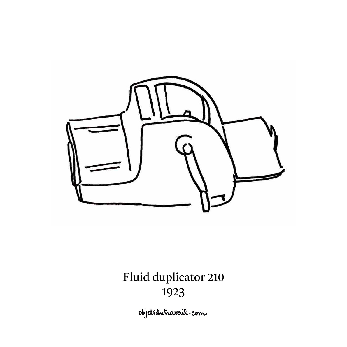 Les techniques “dactylographiques” (dont le papier carbone est un exemple), quant à elles, vont permettre de copier le texte seulement. Elles demanderont un certain niveau d’alphabétisation, et seront largement utilisées dans le monde tertiaire et bureaucrate. C’est la raison pour laquelle se développeront des techniques de copie en grand nombre — jusqu’ici, les techniques permettaient la copie une à une — comme les procédés hectographiques (hecto = 100). Basés sur le principe des encres communicatives (dites encres anilines) vu plus tôt, l’original, rédigé à l’encre aniline, vient être pressé contre une plaque de gélatine, qui absorbe alors le pigment de l’encre, faisant de cette plaque la matrice (le tampon-encreur) pour près de 100 copies, avec la limite que les copies deviennent de plus en plus pâles. La technique de duplication à l’alcool, qui deviendra un succès commercial, mixe l’hectographie et le papier carbone, et permet de copier jusqu’à 200 copies, où à chaque fois “une fine couche de papier se détache du cliché pour s’appliquer sur le papier”, jusqu’à épuisement du carbone. Ce procédé sera populaire dans les écoles et pour l’impression de fanzines.