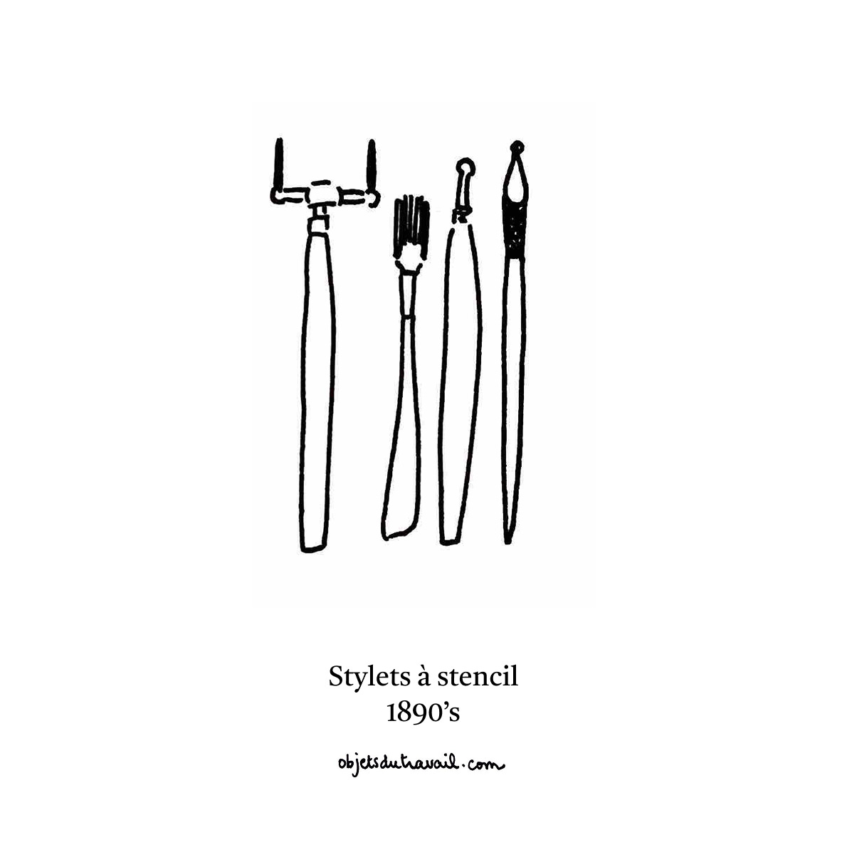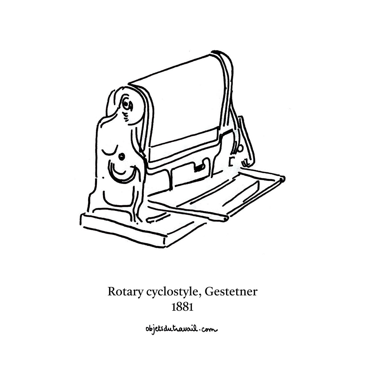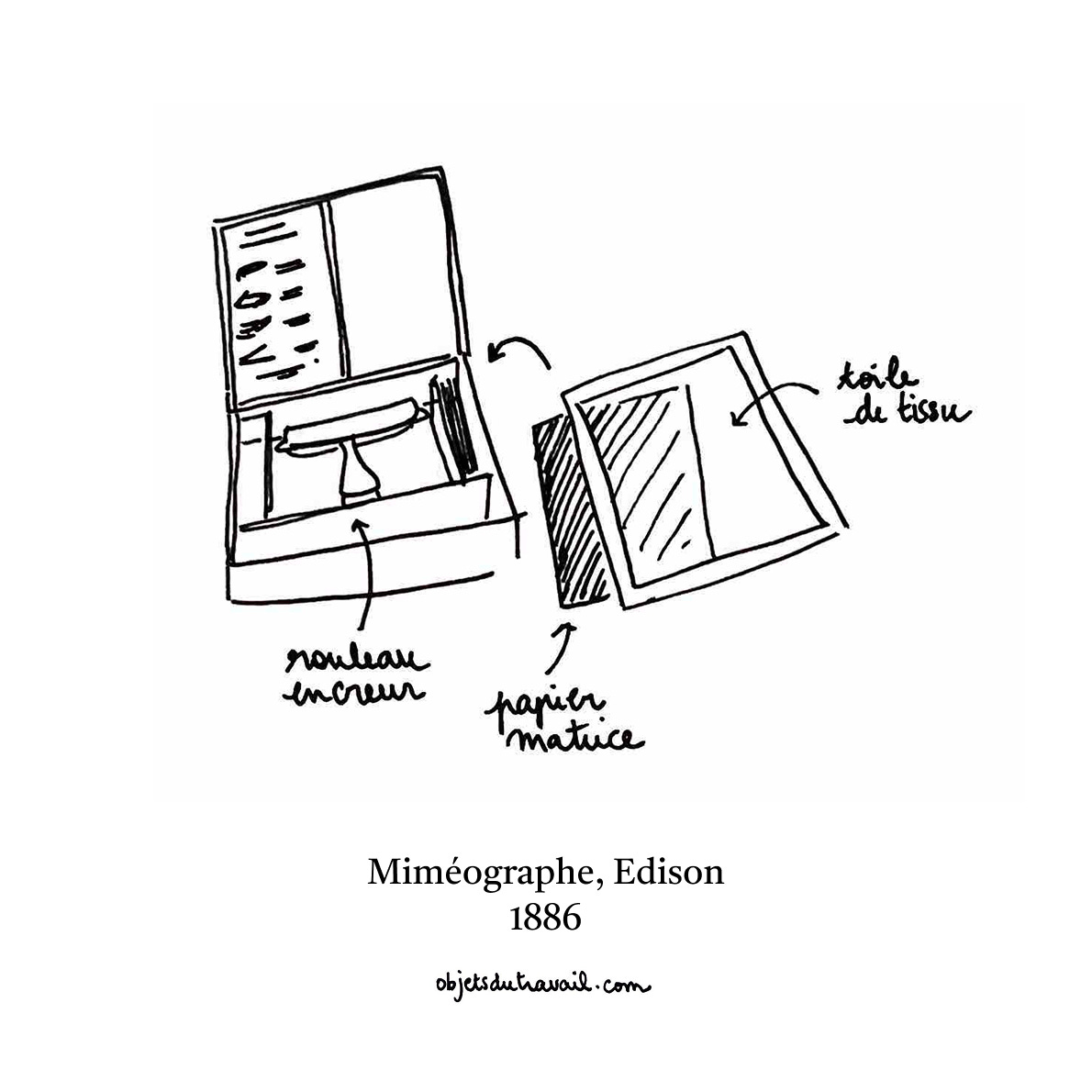 Cela posera les principes pour permettre au stencil, feuille paraffinée, micro-perforée à l’aide d’un stylet doté d’une roulette à dents. À l’aide d’un rouleau encreur, les micro-perforations du pochoir (le stencil) laissent passer l’encre afin de réaliser des duplications. On trouve d’abord la version miméographe, ou limographe, ou encore la presse Freinet — procédé à plat, transportable dans une valisette en bois — puis se développe le cyclostyle, version métallique qui vient ajouter au procédé un tambour rotatif et une manivelle, multipliant ainsi le nombre de copies à la minute (on retrouve dans cette ligne Ronéo, Gestetner, puis la Spirit Duplicator). Mais ces techniques sont limitées par le fait que l’original doit être pensé pour être copié, puisqu’il demande à chaque fois un type de papier particulier, ou une encre, ou un stylet spécifique.