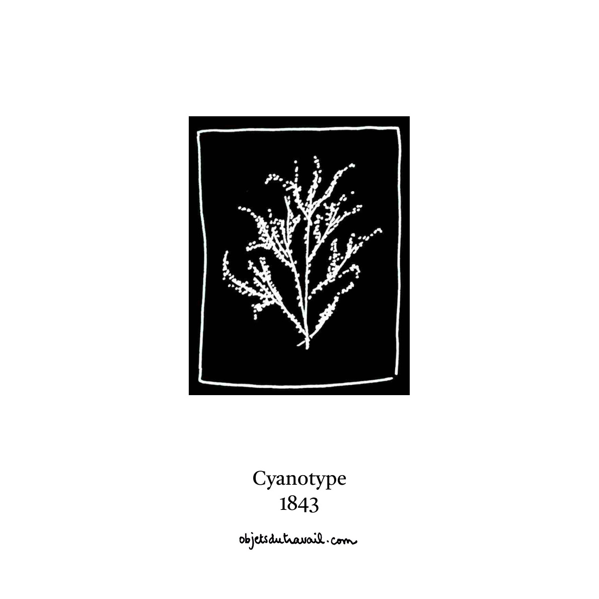 Le cyanotype (Herschel, 1842), ou le calotype (Talbot, 1844), sont autant de procédés utilisant une solution chimique photosensible (se colorant à la lumière), dont la trace subsiste de façon permanente une fois lavée puis séchée. Les termes “positif” et “négatif” qui seront la base de la photographie argentique ont été inventés à cet endroit. Le cyanotype notamment, à la caractéristique de virer au bleu très profond, le bleu de Prusse. Les mondes de l’architecture, de la botanique (Anna Atkins publiera en 1843 son magnifique recueil d’algues marines Photographs of British Algae : Cyanotype Impressions), et de l’art, se saisiront de ce procédé, permettant un tracé net précis, et une reproduction rapide, simple, à moindre coût de n’importe quel format. C’est comme ça que sont nés les blueprints, caractéristiques des dessins techniques et des plans, que l’on peut retrouver pour illustrer, par exemple, les brevets industriels, ou les grands projets architecturaux ou urbains. S’inspirant du même principe, les dessinateurs et industriels, entre 1940 et avant l’avènement de la conception assistée par ordinateur et de la xérographie (enfin, la photocopieuse, on y arrive !), utiliseront la diazographie. A l’inverse du cyanotype, le dessin était en ligne bleue sur fond blanc, et donc considéré comme le procédé le plus économique avant l’arrivée des traceurs numériques et des photocopieurs grand format.
