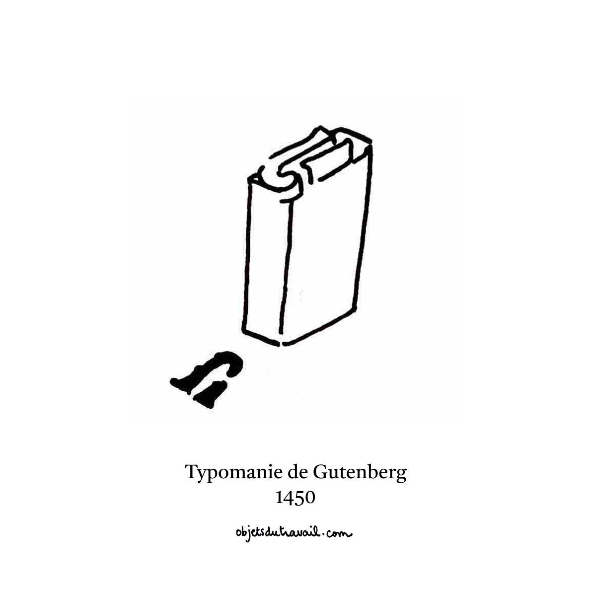 Si la Chine avait dès le 7ème siècle développé une technique d’impression sur bois, la xylographie (tampon-encreur), ça n’est qu’au milieu du 15ème siècle que l’imprimerie pointe son nez en Occident. Adaptant le principe des caractères mobiles en céramique utilisés en Chine, Gutenberg utilise des caractères mobiles en plomb et les agence sur une grille pour pouvoir créer un texte en négatif et l’imprimer à l’aide d’une presse. C’est en 1455 que sera imprimé le premier livre occidental avec cette nouvelle technologie, la Bible de Gutenberg.